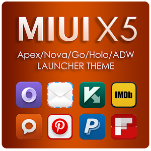 >>>>>>>>> DESCRIPTION <<<<<<<<<<<MIUI X5 HD Theme for Apex Launcher, Nova Launcher, ADW Launcher, Holo Launcher, Go Launcher, Atom Launcher and many other Launcher.