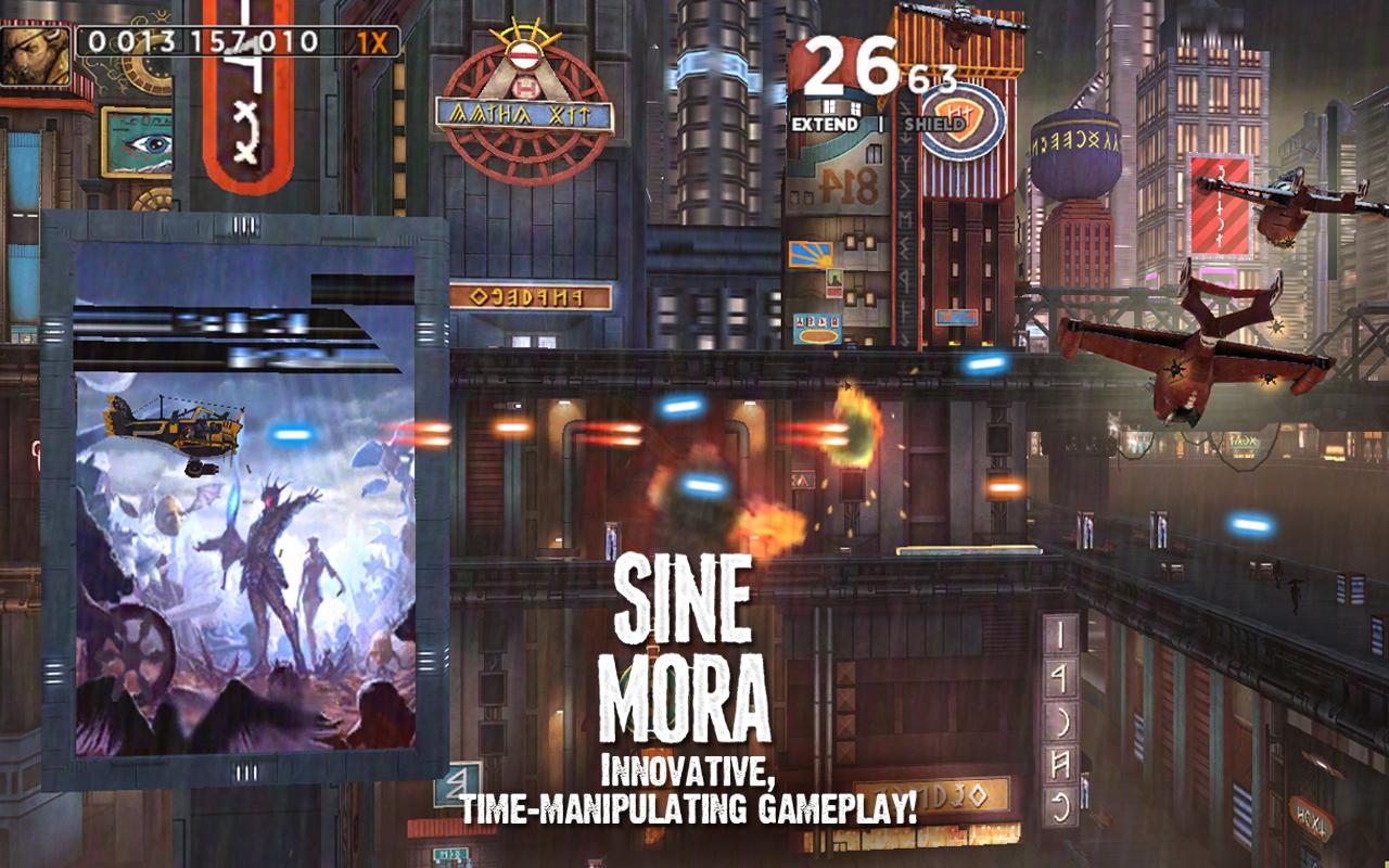 Sine Mora is a horizontal shootem up that provides a unique take on challenge, where time is the ultimate factor. Mixing classic shooter sensibilities with contemporary presentation, Sine Mora is a gorgeous shootem up that offers a Story Mode that weaves an over-the-top tale and an Arcade Mode that provides deep, satisfying gameplay to challenge fans of the genre. With many ways to manipulate time, Sine Mora features over 50 weapon combinations to complete each beautiful stage that form fits to the players skills with scaling difficulty. Soundtrack composed by Akira Yamaoka and featuring boss designs by Mahiro Maeda.